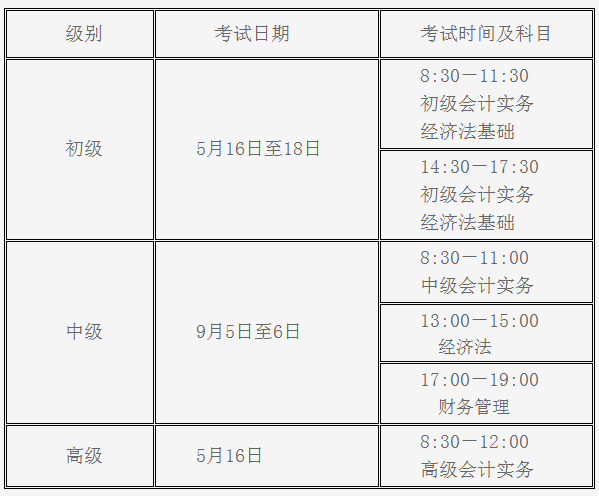 4.2026年5月16日至18日,组织初级会计资格考试,5月16日组织高级会计资格考试。
