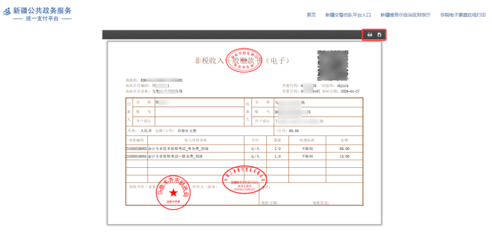 7. 报名信息可查看报名相关信息,复制第三方缴款码,访问开具发票的地址:http://finpt.xjcz.gov.cn/finpt/index.do;